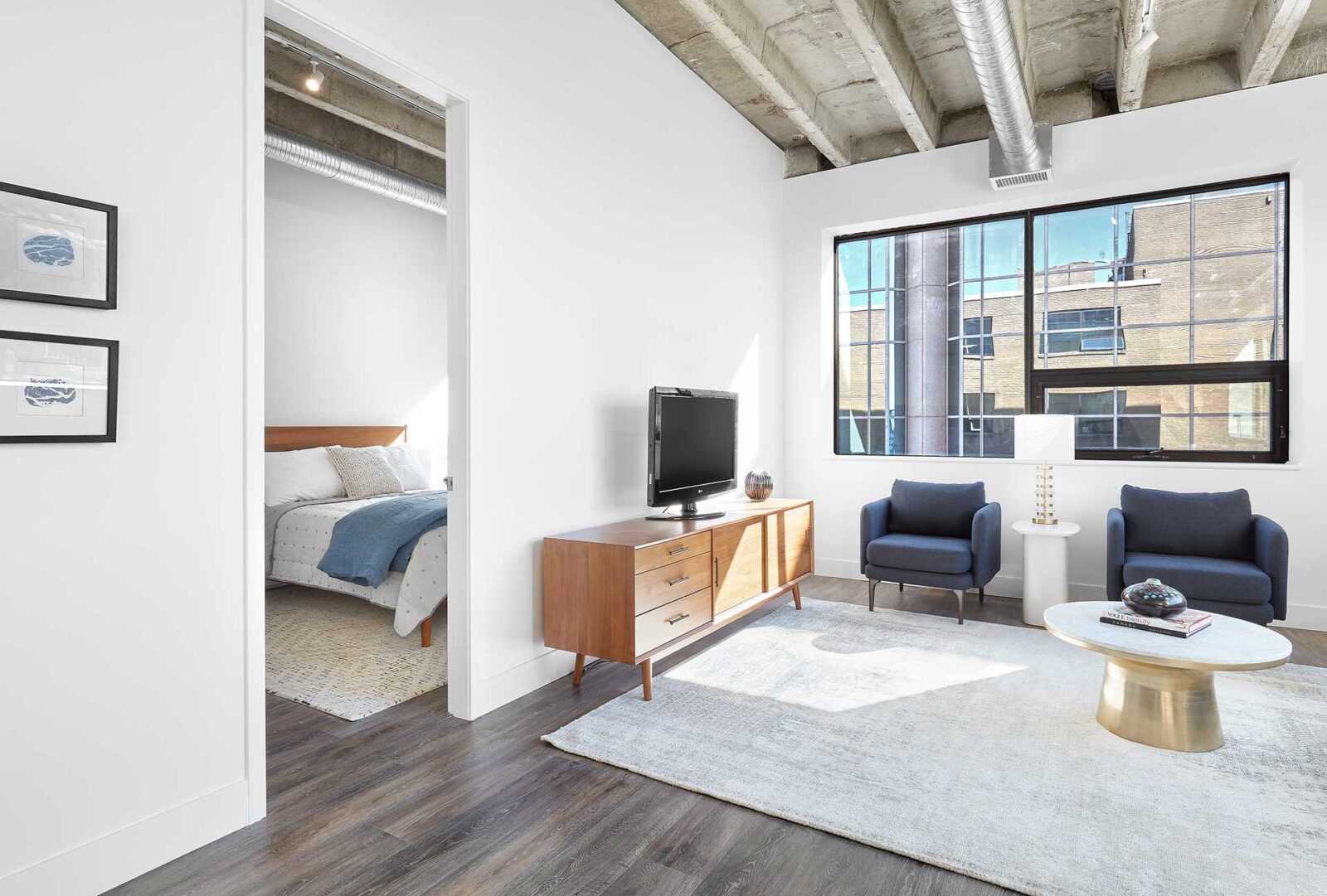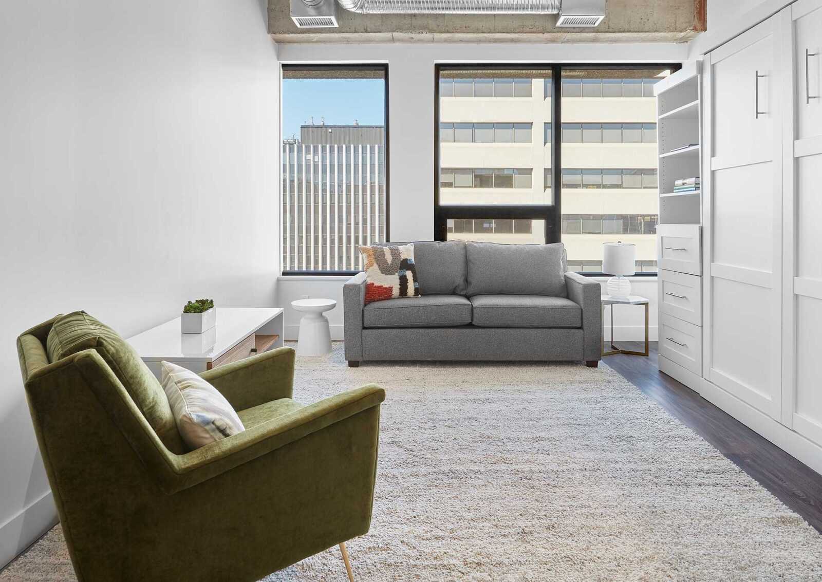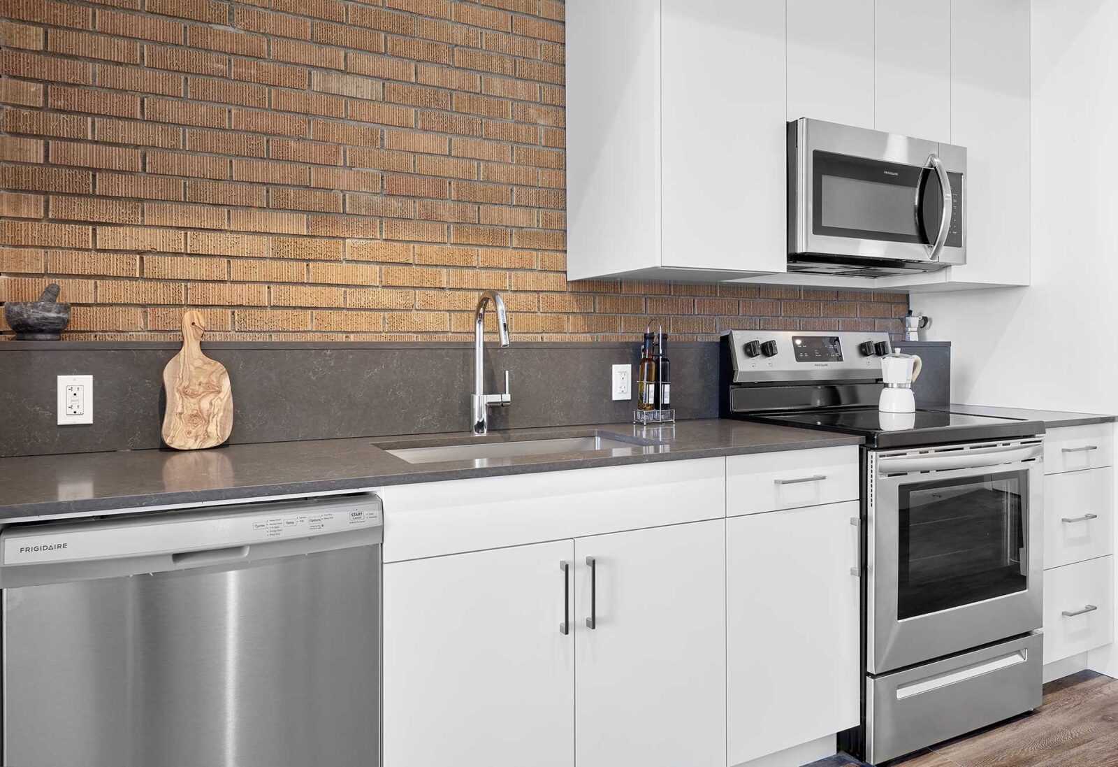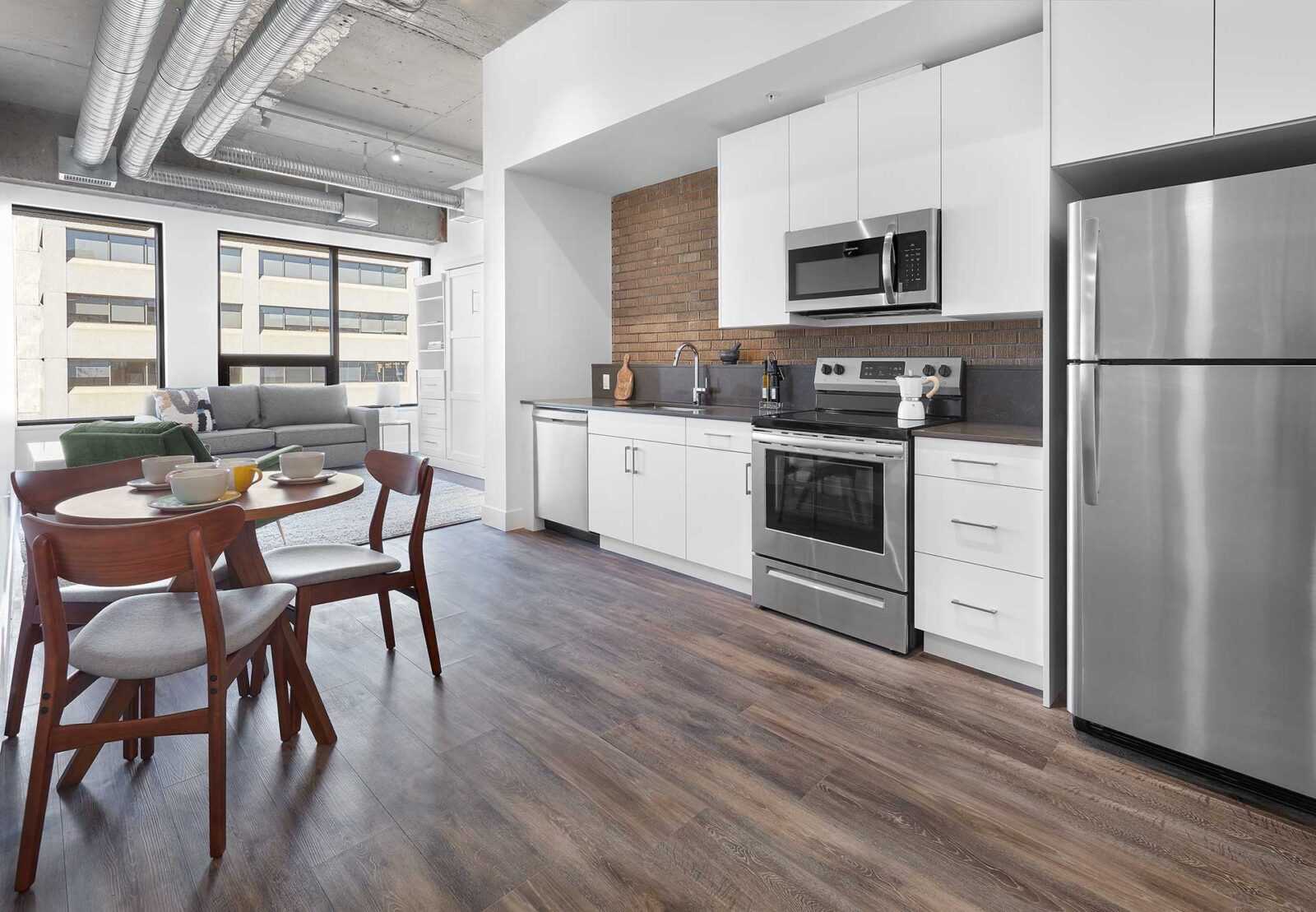 The gym is an elevator ride away. Our secure 24-hour on-site workout room is equipped with spin bike, elliptical trainer, rowing machine, treadmill, weights, and a stretching area. 100 House is conveniently situated within walking distance of LRT/transit, MacEwan University, and the picturesque River Valley.